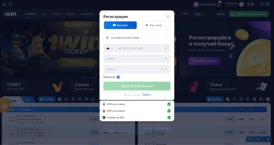При регистрации на 1вин у вас есть возможность ввести актуальный промокод — уникальную комбинацию символов, которая активирует специальные бонусные предложения. Чтобы получить бонус за регистрацию, важно правильно указать промокод в соответствующем поле регистрационной формы.